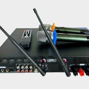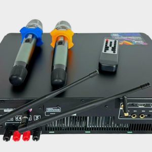 Ngoài ra ở mặt sau máy còn có 2 cổng mic nên khách hàng có thể sử dụng thêm 2 chiếc micro có dây nữa.